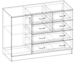 • Корпус, полки и фасады изготовлены из ЛДСП 16 мм с кромкой ПВХ 0,4 мм.