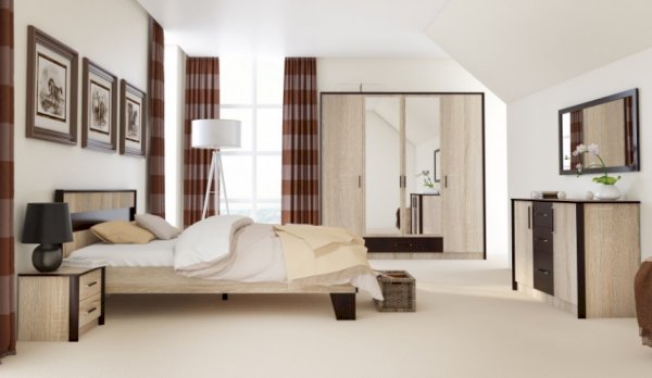 Вместительный комод Эшли подходит для хранения белья, одежды, текстиля. Центральную часть занимают три ящика с направляющими полного выдвижения, по обеим сторонам симметрично расположены секции, в каждой из которых имеется по одной полке. Скругленные края верхней крышки и профиля МДФ 22мм по вертикальным сторонам комода – максимально безопасное использование мебели. Кромка цвета венге в сочетании с контрастными вставками подчеркивают древесную текстуру и рисунок светлого дуба сонома.