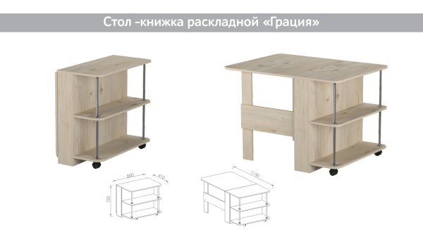 Стол-книжка Грация (Марибель) – товар доступен к покупке в интернет-магазине saratovskiy-dommebeli.ru. Цена – 8 301 руб. без учета доставки. Стоимость дополнительных услуг и сроки получения мебели уточняйте у менеджера. Возможен безналичный расчет, оплата по карте на сайте.