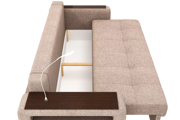 Добавить контрастных деталей в интерьер поможет пуф, интегрированный в подлокотник. Этот вариант для современных людей, которые ценят комфорт и удобство отдыха. Мягкое сиденье с легкостью трансформируется в просторное спальное место, на котором смогут утроиться ваши гости. Стильный и уютный, он станет отличным решением, если вы ищите не только красоту, но и комфорт.