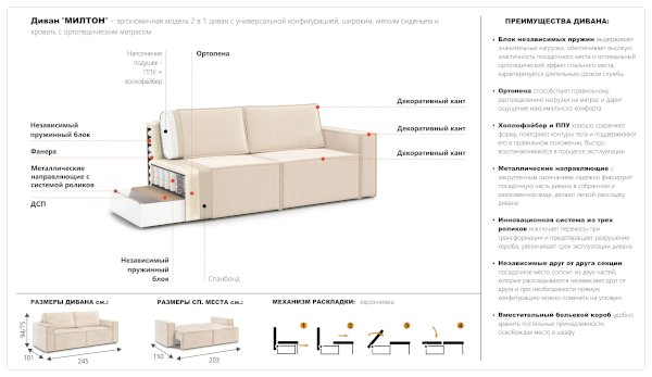 Диван Милтон (Империал) – товар доступен к покупке в интернет-магазине saratovskiy-dommebeli.ru. Цена – 60 788 руб. без учета доставки. Стоимость дополнительных услуг и сроки получения мебели уточняйте у менеджера. Возможен безналичный расчет, оплата по карте на сайте.