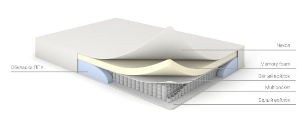 Уникальный состав основы из двух инновационных слоев: Memory foam и блоком независимых пружин - Multipocket.