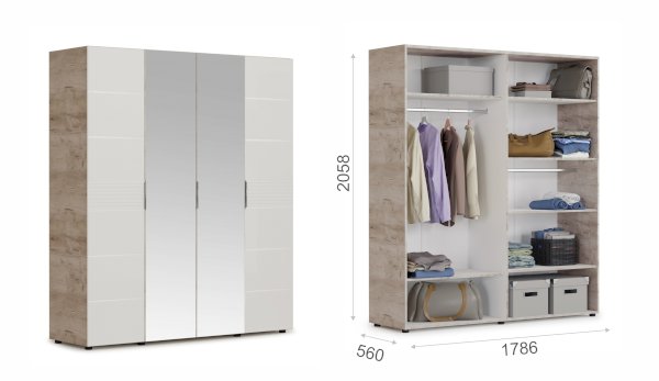 Современный распашной шкаф Джулия яркий представитель европейского минимализма. Это шкаф-конструктор, который позволяет выбрать подходящий вам размер, его наполнение и дизайн. На базе корпуса можно создать множество комбинаций: с зеркалами, с глухими глянцевыми фасадами, с порталом из ЛДСП 22мм или без него. Дополнительная опция – светодиодная подсветка монтируется в верхней части портала над каждой дверью. Шкаф выполнен из экологически безопасных надежных материалов. Декором белым глянцевым фасадам High Gloss служит фрезерованный рисунок «Волна» - подчеркивает зеркальный блеск, делает интерьер спальни особенным и неповторимым. Торцевые ручки из хромированного металла - яркий акцент фасадов. Наполнение шкафа включает в себя вместительные полки и отделения со штангой, что позволяет создать систему для хранения вещей различного назначения. Идеально компонуются со всеми модулями системы Джулия.
