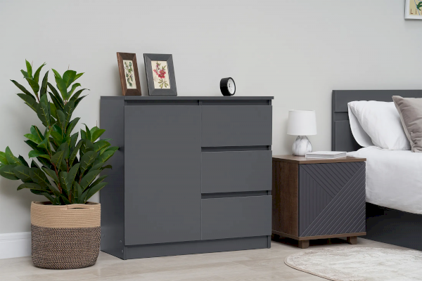 Комод с 3 ящиками и 1 дверью Челси 800 (Миф) – товар доступен к покупке в интернет-магазине saratovskiy-dommebeli.ru. Цена – 4 828 руб. без учета доставки. Стоимость дополнительных услуг и сроки получения мебели уточняйте у менеджера. Возможен безналичный расчет, оплата по карте на сайте.