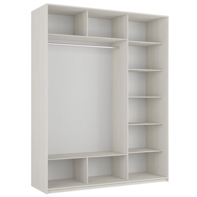 Шкаф-купе 3-х дверный Прайм Зеркало/Белое стекло/Зеркало 1800х2300х570 мм Ясень Анкор Светлый