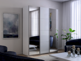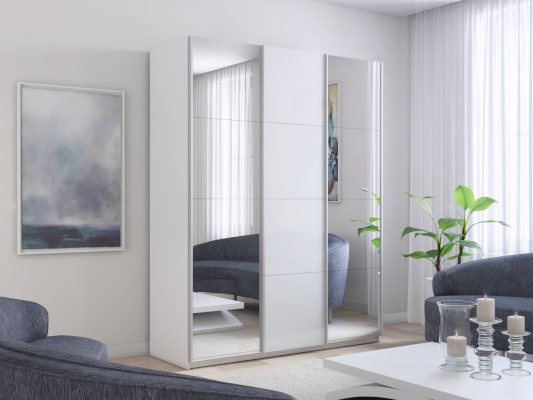 Шкаф-купе 3-х дверный Прайм Зеркало/Белое стекло/Зеркало (Е1)