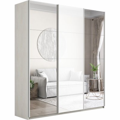 Шкаф-купе 3-х дверный Прайм Зеркало/Белое стекло/Зеркало 1800х2300х570 мм