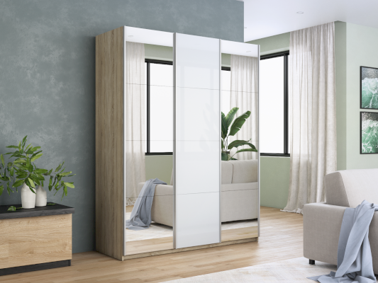 Шкаф-купе 3-х дверный Прайм Зеркало/Белое стекло/Зеркало (Е1) – товар доступен к покупке в интернет-магазине saratovskiy-dommebeli.ru. Цена – 75 636 руб. без учета доставки. Стоимость дополнительных услуг и сроки получения мебели уточняйте у менеджера. Возможен безналичный расчет, оплата по карте на сайте.