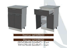 ШН1Д1Я600 Шкаф нижний с 1-м ящиком и 1-й дверью Белый глянец холодный/Графит софт