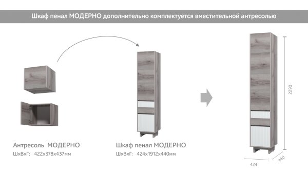 Шкаф-пенал MODERNO (Марибель) – товар доступен к покупке в интернет-магазине saratovskiy-dommebeli.ru. Цена – 14 336 руб. без учета доставки. Стоимость дополнительных услуг и сроки получения мебели уточняйте у менеджера. Возможен безналичный расчет, оплата по карте на сайте.