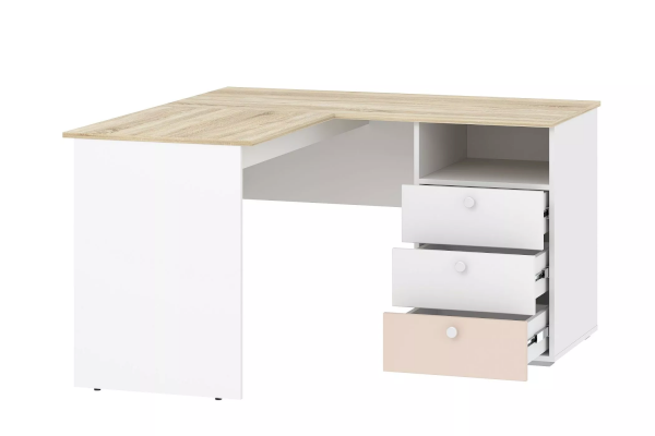 Стол письменный угловой Банни поможет оборудовать в комнате подростка комфортное и эргономичное рабочее пространство. Модель позволит задействовать обычно пустующее место в углу, освободив больше пространства для зоны отдыха. На рабочей поверхности модуля достаточно места для размещения не только письменных принадлежностей, но и ноутбука. Закругленные углы столешницы делают эксплуатацию модуля безопасной для ребенка. По окончании занятий ребенок сможет убрать книги и тетради в выдвижные ящики для поддержания порядка на рабочем месте.
