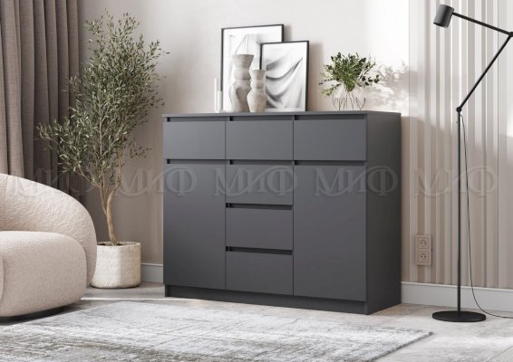 Комод Челси 1200 с 2 дверьми и 6 ящиками (Миф) – товар доступен к покупке в интернет-магазине saratovskiy-dommebeli.ru. Цена – 9 920 руб. без учета доставки. Стоимость дополнительных услуг и сроки получения мебели уточняйте у менеджера. Возможен безналичный расчет, оплата по карте на сайте.