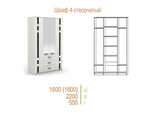 Спальный гарнитур Николь благодаря белому цвету выглядит воздушным и современным. Черное стекло и зеркала добавляют контраст и изящество.