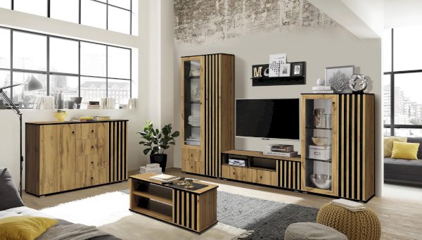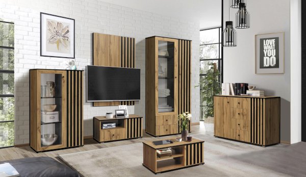 Торцы сверху и снизу покрыты черной пленкой и удачно гармонируют с реечным фасадом. Черные рамки подчеркивают границы комода. Внутренние полки и дверцы изнутри также выполнены в черном цвете. Таким образом достигается постоянный контраст, что выглядит очень эффектно!