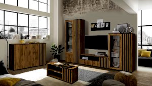 По краям – справа и слева – за распашными дверцами находятся полки, а в середине – четыре выдвижных ящика. Однако в середине – это не значит, что в центре. Принцип асимметрии здесь ярко выражен. Левая часть комода самая широкая, правая – гораздо уже. А пространство между ними отдано под выдвижные ящики. Таким образом, самая вместительная часть комода находится слева, за однотонной распашной дверцей цвета дуба Вотан. Внутри – два отделения – больших и вместительных, сюда поместятся объемные вещи. Каждая полка из ЛДСП выдерживает до 5 кг. В правой стороне места чуть поменьше – за счет ширины полок, но вполне достаточно, чтобы разместить, например, коробки с обувью или сложить вещи или постельное белье. Выдвижные ящики предназначены для хранения менее габаритных вещей. В зависимости от тематики помещения в них можно разложить бумаги, документы, нижнее белье, полотенца. На верх комода можно поставить телевизор, а если повесить над ним зеркало и на столешнице расставить духи и косметику, он превратится в туалетный столик!