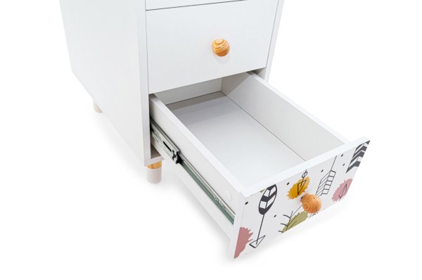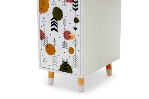 - На тумбе и ящиках разработана дизайнерская фотопечать