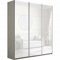 Шкаф-купе 3-х дверный Прайм Белое стекло/Белое стекло/Белое стекло 1800х2300х570 мм Бетон