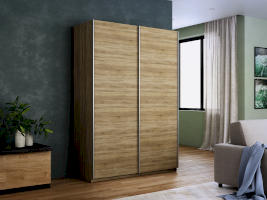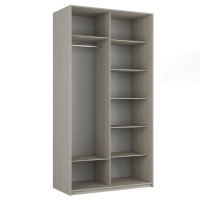 Серия «Прайм» отличается доступностью и функциональностью Навесные двери и лаконичная отделка фасадов создают прогрессивный дизайн. Подойдет тем, кто любит компактную и изящную мебель. Алюминиевые ручки и верхний ходовой профиль обеспечивают легкость и прочность конструкции. Многолетняя безупречная работа благодаря высококачественной немецкой фурнитуре Hettich. Прочная ПВХ-кромка толщиной до 1 мм защищает края от сколов и повреждений. Плавный ход дверей обеспечивает надежная система Hettich Top Line M. Дополнительно можно установить доводчики. Снаружи нет заглушек и винтов благодаря стяжечной системе крепления полок на флипперах, а корпус усилен эксцентриковыми стяжками. Навесные двери скрывают раздвижной механизм от глаз. Они надежно удерживаются в направляющих и не соскакивают. Каждая дверь поделена на 4 секции Секции расставляются в произвольном порядке, создавая новый дизайн фасада.