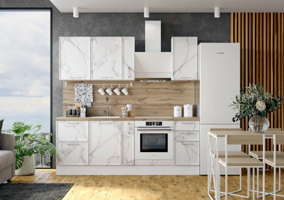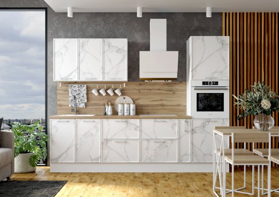 Корпус и фасад поставляются в отдельных упаковках, что дает возможность комбинировать в одной кухне разные фасады.