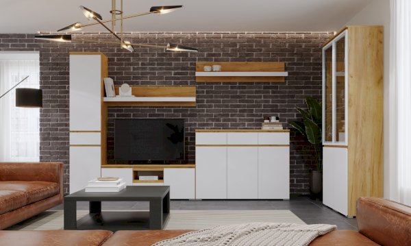 Крепится к стене через навесные элементы. Может использоваться индивидуально, а также может быть дополнительным элементом к тумбе ТВ.