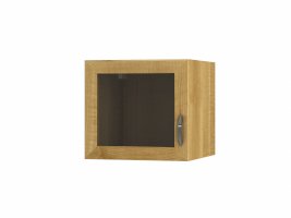 Корпус изготовлен из ЛДСП 16 мм с кромкой ПВХ 0,4 мм. Фасад изготовлен из рамки МДФ (КВАДРО) + прозрачное стекло. Задняя стенка изготовлена из ХДФ 4 мм. Петли - без доводчиков. Ручка скоба 96 мм - хром. Навесы регулируемые - SCARPI. Данное изображение представлено в следующих цветах ЛДСП: корпус и фасад - Клён.