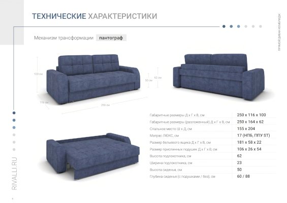 Шагающий механизм трансформации пантограф прост и надежен; при раскладывании не портит напольное покрытие. Модель также оборудована вместительным бельевым ящиком.